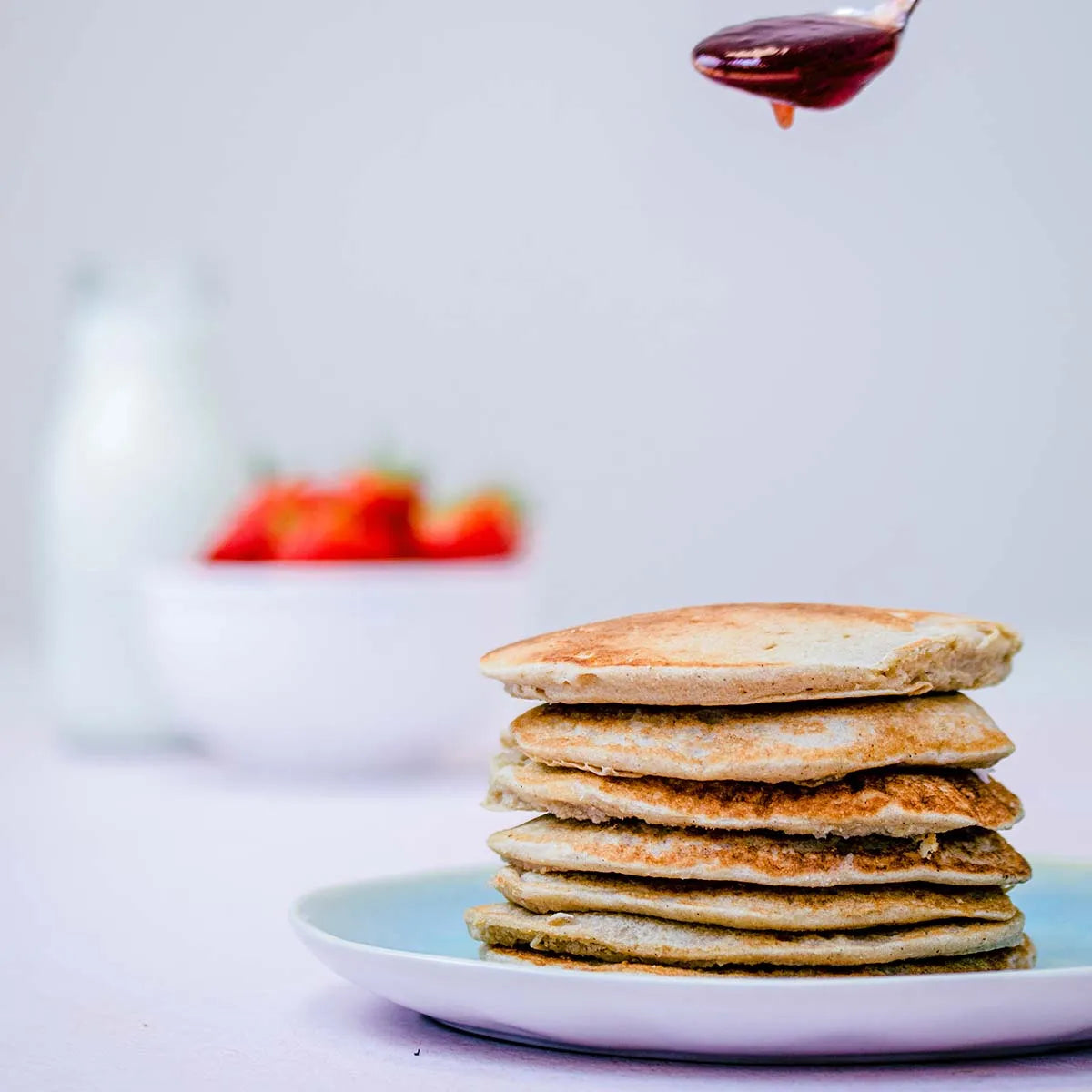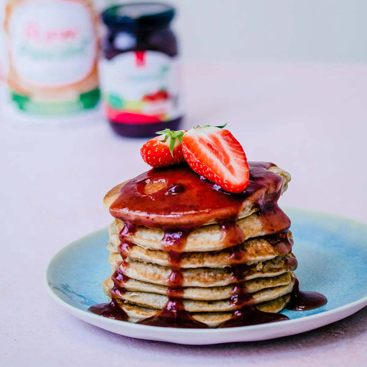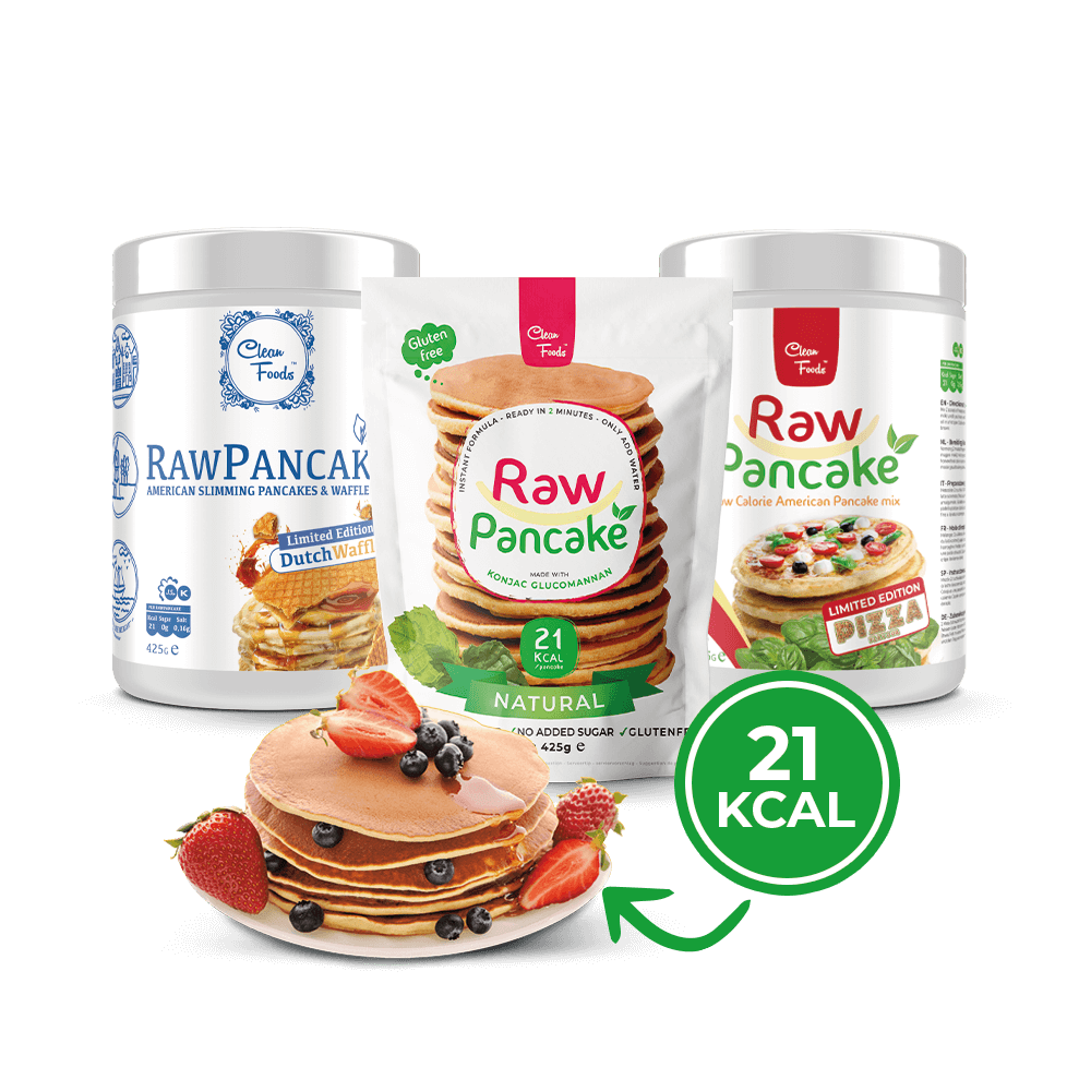 Pancakes crusEssayezles pancakes crus avec des fruits, par exemple des fraises fraîches. Peut également être combiné avec un topping de Cleanfoods, comme par exemple de la sauce au chocolat blanc ou brun. Ils sont exempts de sucre, de graisse et de gluten.